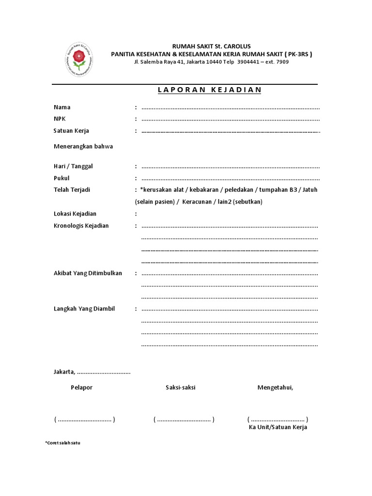 Contoh Format Laporan Kebakaran