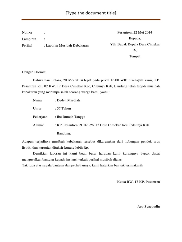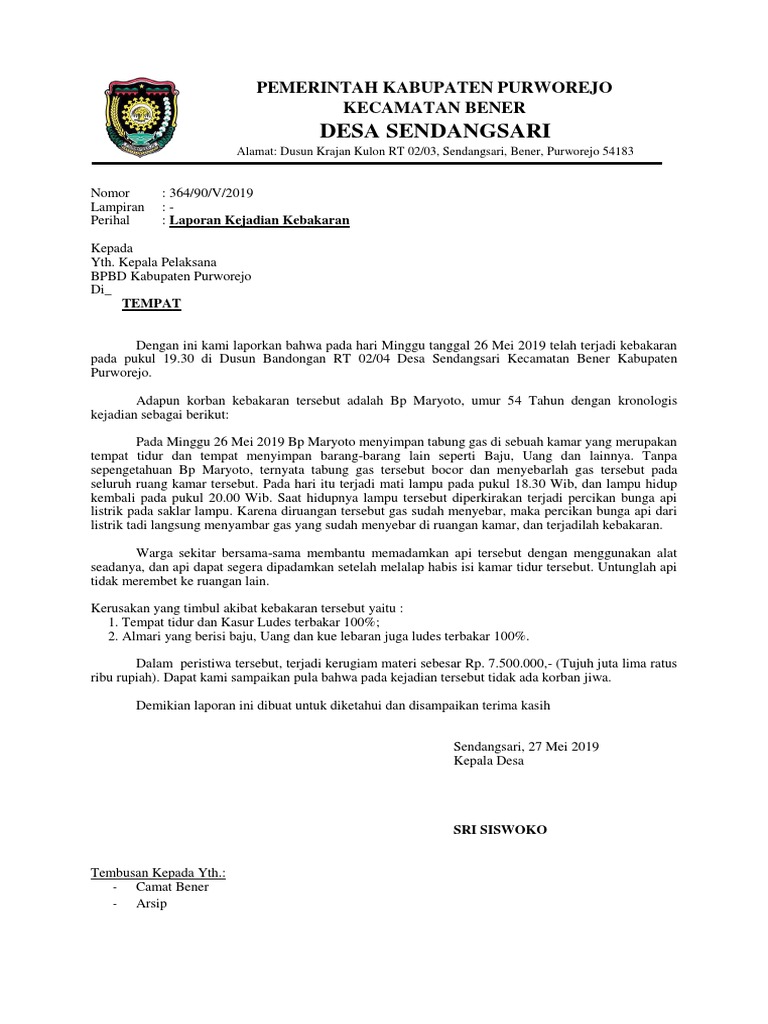 Contoh Surat Kronologi Kebakaran Pdf
